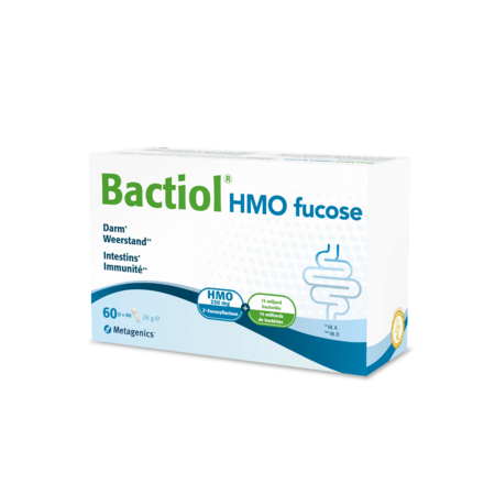 - Bactiol® HMO fucose besteht aus 2 Blistern: 1 Blister mit 2'-Fucosyllactose und L-Threonin und ein 2. Blister mit Kapseln, die 15 Milliarden lebende Bakterien und Vitamin D enthalten